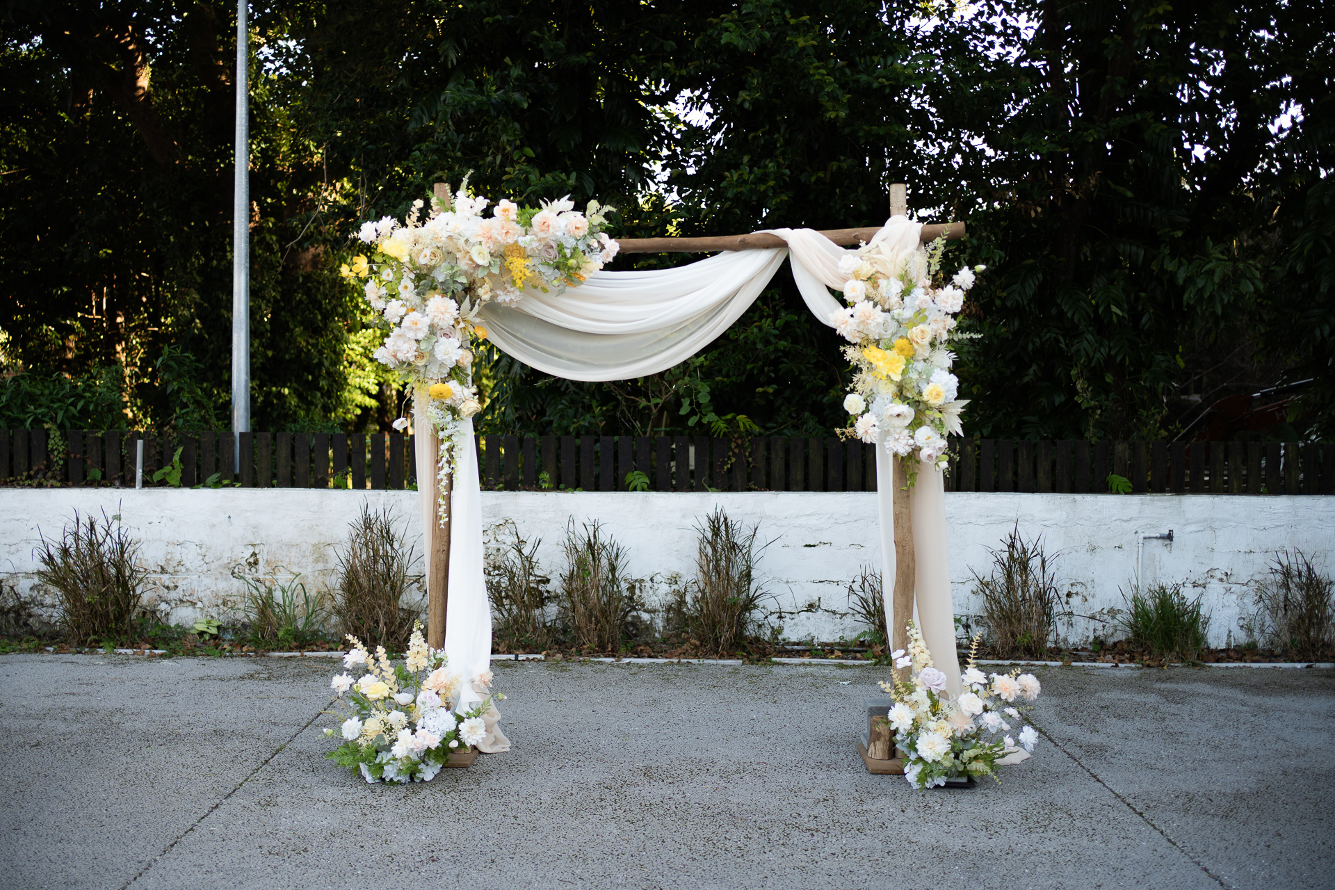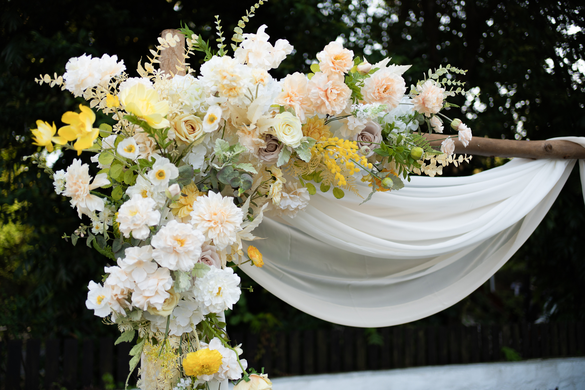 黃色系仿真花藝拱門佈置