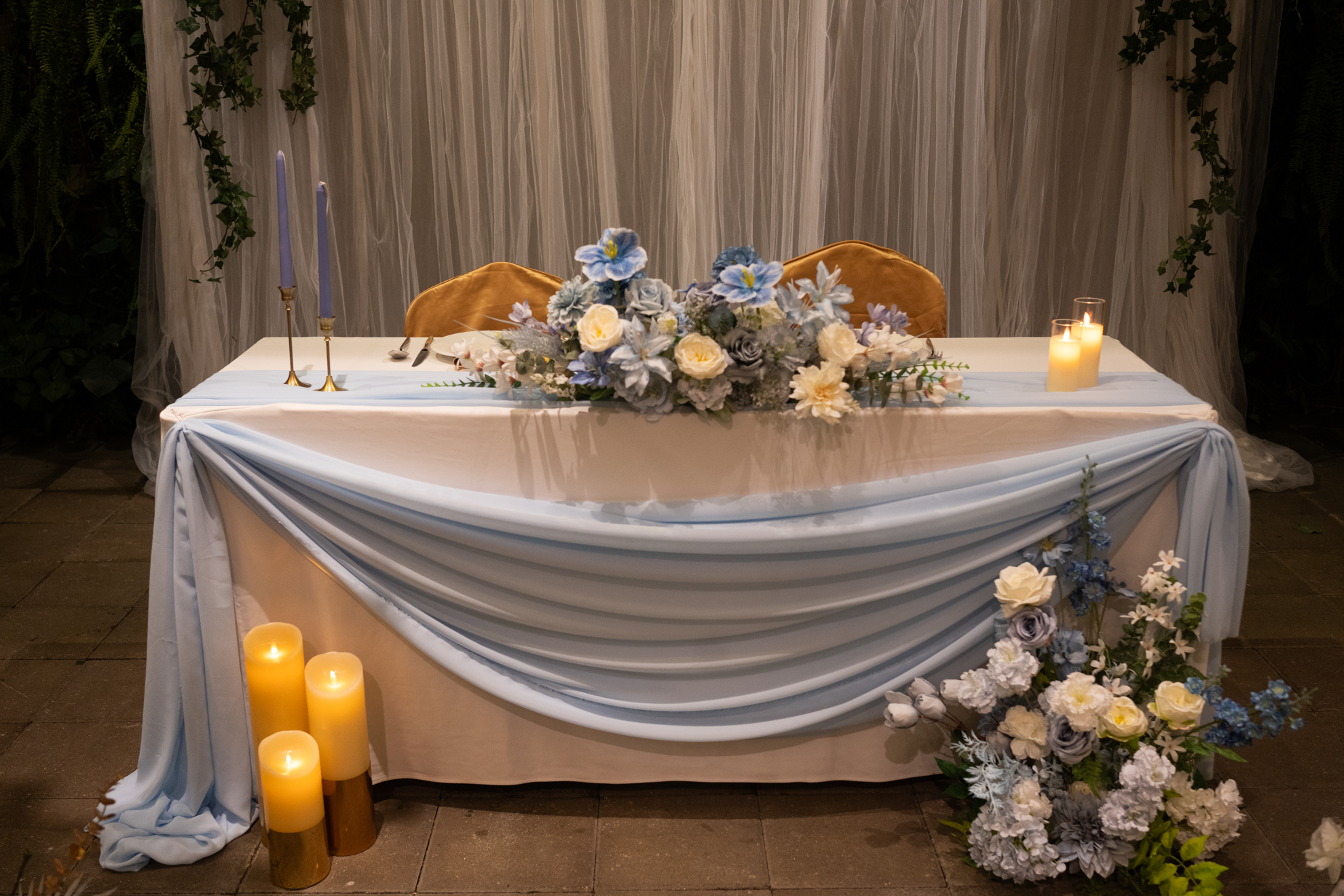 F. 收禮桌(兩長桌)/相本桌(一圓桌)佈置,單一區NT$2,500、雙區NT$4,000
